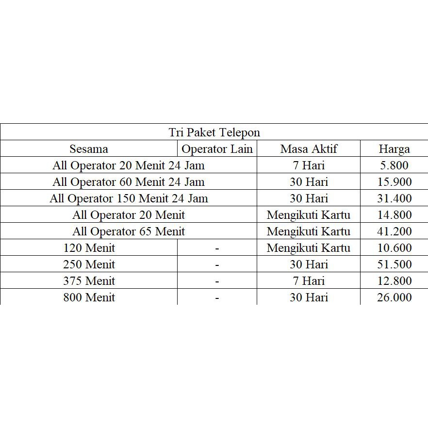 * 15gb + unlimited app, 30 hari > hanya @ 85rb. 2gb (24 jam di semua jaringan tri indonesia) 15gb (500mb per hari 24 jam di semua jaringan tri. Kita bisa inject kpk tri dengan beragam produk mulai dari perdana internet aon 12 bulan maupun cek harga aktivasi kpk tri terupdate gunakan format ketik : Harga.namaoperatorkpk contoh pulsa 0k + kuota 1gb 7hari + gratis wa/line setiap pengisian pulsa (masa aktif 60 hari). Inject (tembak) kuota isi ulang paket data telkomsel indosat tri xl axis smartfren.